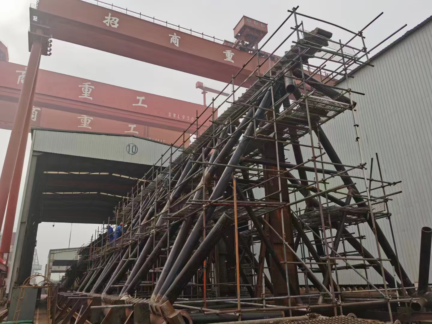 2023年4月30日,隨著招商重工273項目最后一節(jié)樁腿的成功摘鉤,標(biāo)志著豪通船務(wù)承接的招商重工“1200噸風(fēng)電安裝船”樁腿工程完美收關(guān)。自22年8月1日開始,豪通船務(wù)調(diào)集最優(yōu)秀的班組從齒條加工,單樁腿制作,樁腿合攏及最后的插樁對接,每一個環(huán)節(jié)都嚴(yán)絲合縫,無縫對接,所有作業(yè)人員爭分奪秒,夜以繼日,力爭在最短時間內(nèi)保質(zhì)保量完成項目并交付。